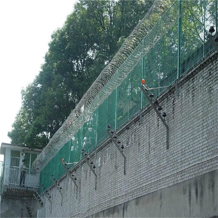 建设于监狱看守所的内外墙地面及高墙之上,网墙内侧或顶部加装蛇腹形刀刺网,形成一道高不可攀、难以逾越的隔离障碍。