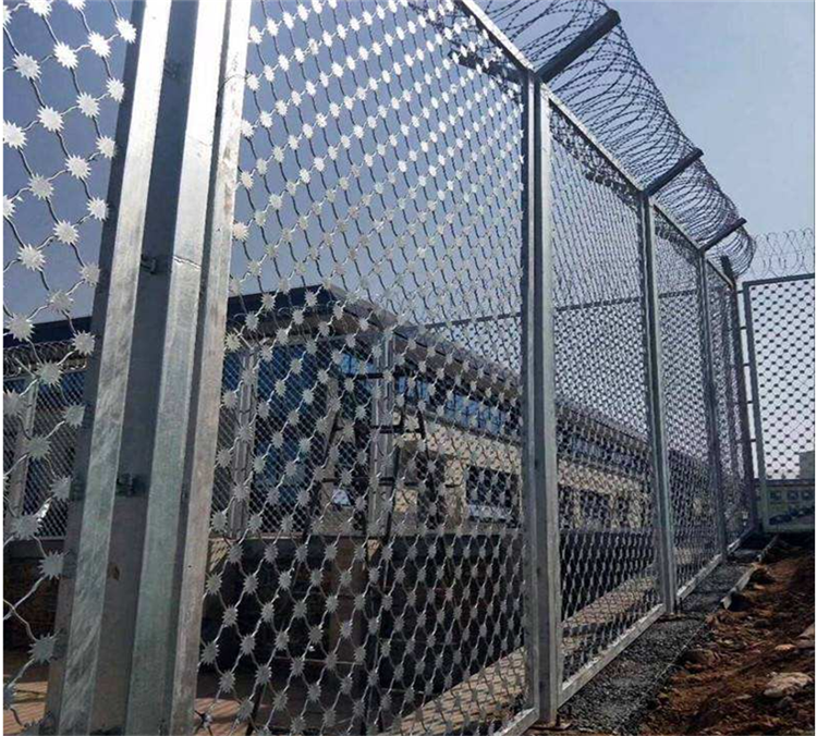 2、网片可换成焊接刀刺网,网孔一般为 75*150mm,50*100mm,材质常用热镀锌和 不锈钢 304。